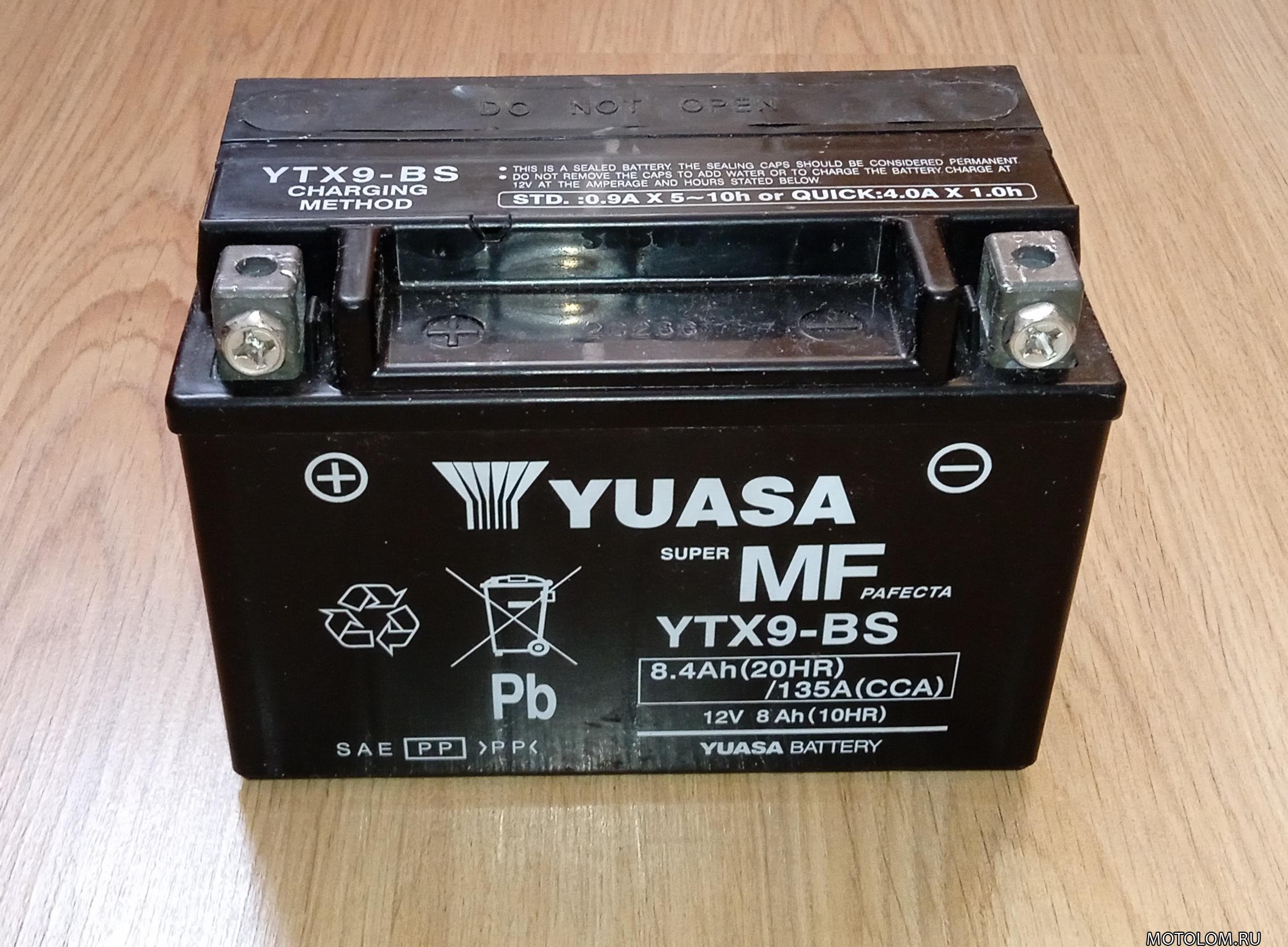 Продаётся оригинальный аккумулятор на мотоцикл Yuasa YTX-9BS. Снят с рабочего мотоцикла. Заряд держит без проблем. Есть отправка в регионы, делайте заказ на сайте.