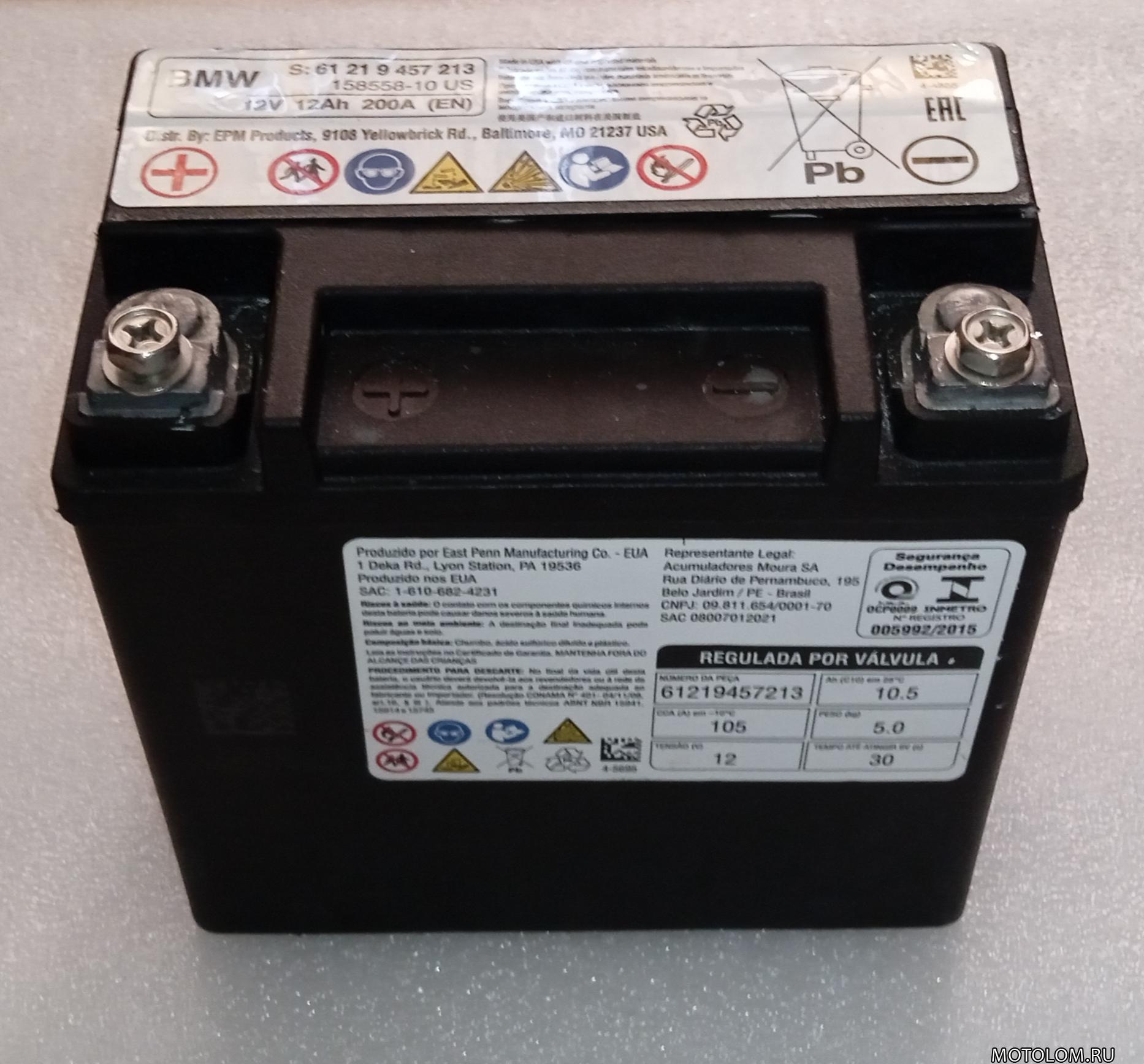 Продаётся оригинальный б/у аккумулятор BMW 61 21 9 457 213. Подходит на многие модели мотоциклов BMW. Снят с целого рабочего мотоцикла. Аккумулятор обслужен и заряжен! Нагрузку держит без проблем. Фото с нагрузкой смотрите (до и после). Какой год выпуска - без понятия! Размеры стандартные, гуглите) Отправляю в регионы без проблем. Делайте заказ на сайте.